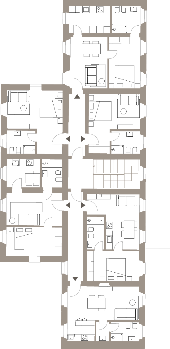 Al primo piano della Villa Padronale saranno presenti 5 appartamenti per le donne