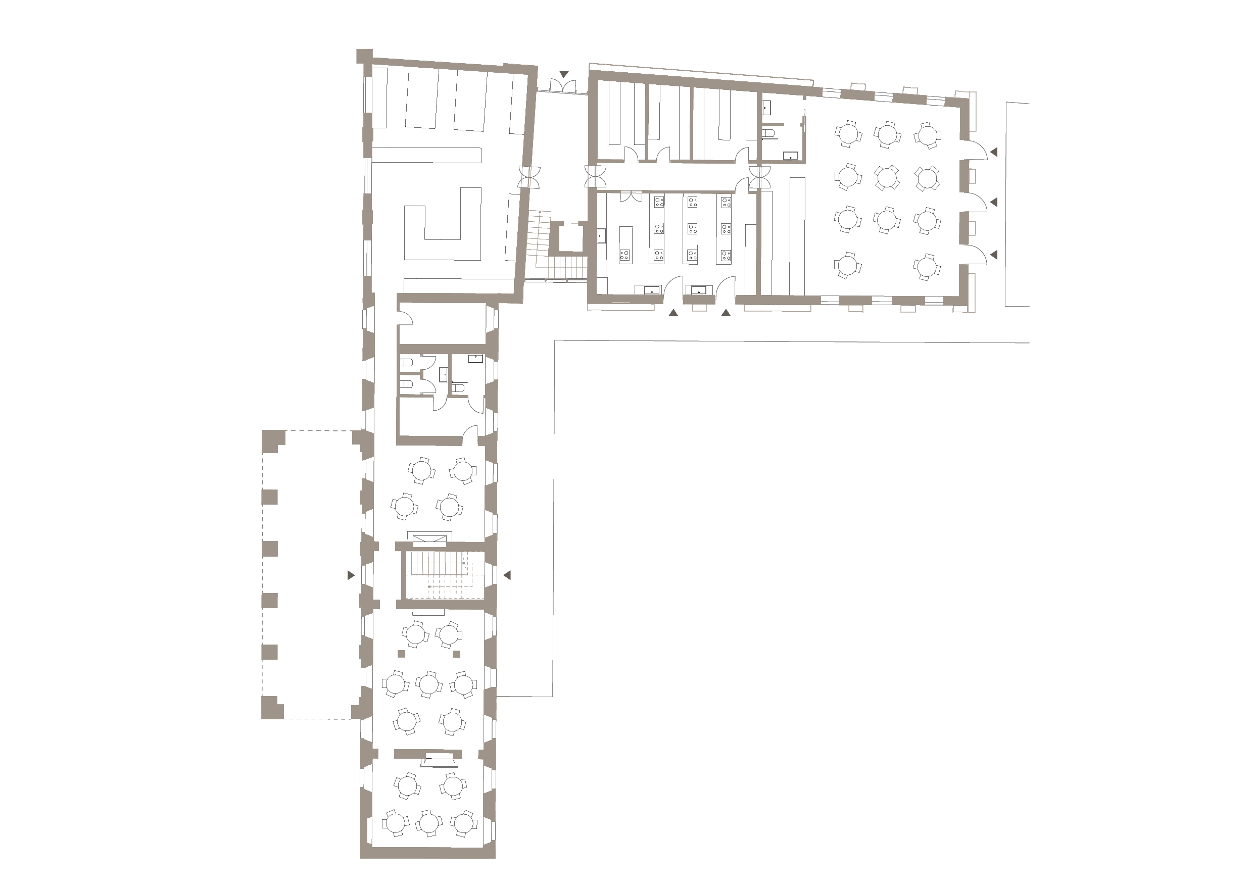 Il piano terra della Villa Padronale ospiterà un Ristorante per cene aziendali e un Bistrot aperto tutti i giorni per pranzi e cene informali.